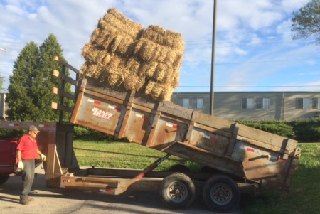 Thanks to those folks, we have hay bales set next to our plots for the season.